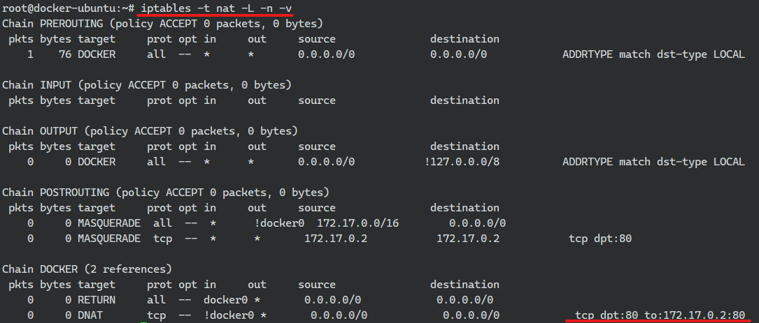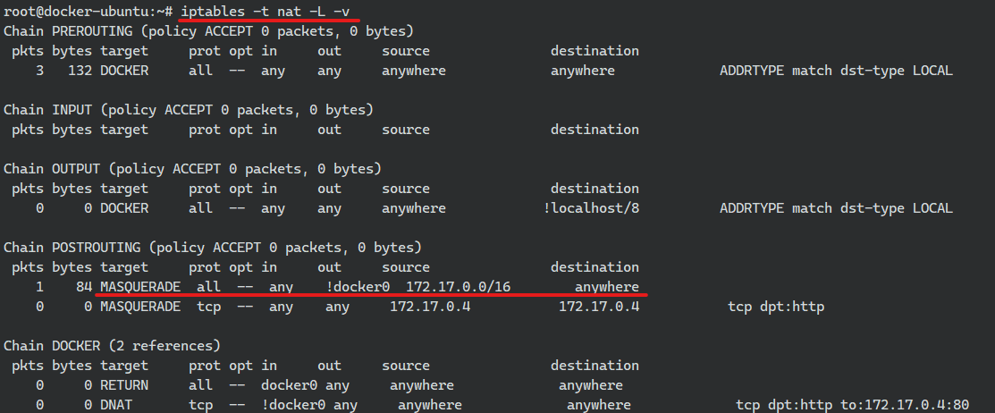 iptables -t nat -L -n -v