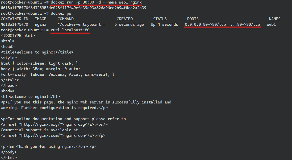 docker run [-p 호스트포트:컨테이너포트] <이미지명:태그>