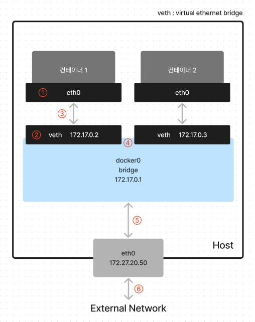 * 80포트를 열고있는 컨테이너들이 여러개인 것은 가능 하나 호스트의 eth0 에 80포트로 연결될 수 있는 건 하나. 컨테이너 끼리는 ip가 달라서 포트가 80포트로 같아도 각자의 포트라 상관없지만 연결되는 호스트의 포트 80은 단 하나만 존재하기 때문이다. 그러므로 nginx를 여러개 연결해주고 싶다면, 80포트가 아닌 다른 포트로 연결시키면 된다.