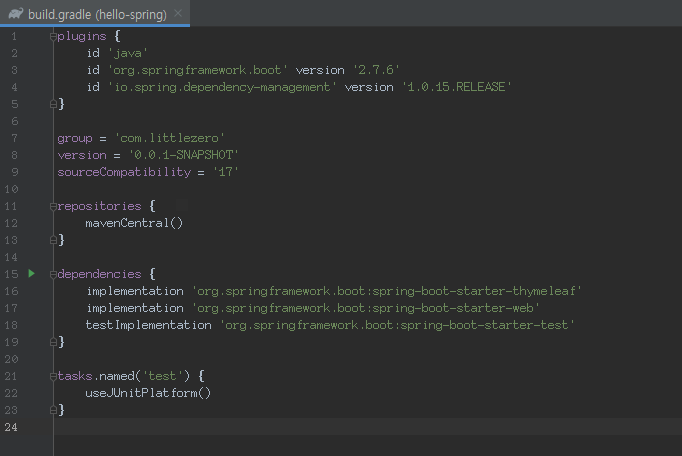 build.gradle 파일에서 사용 중인 플러그인, dependencies 등을 확인할 수 있다.