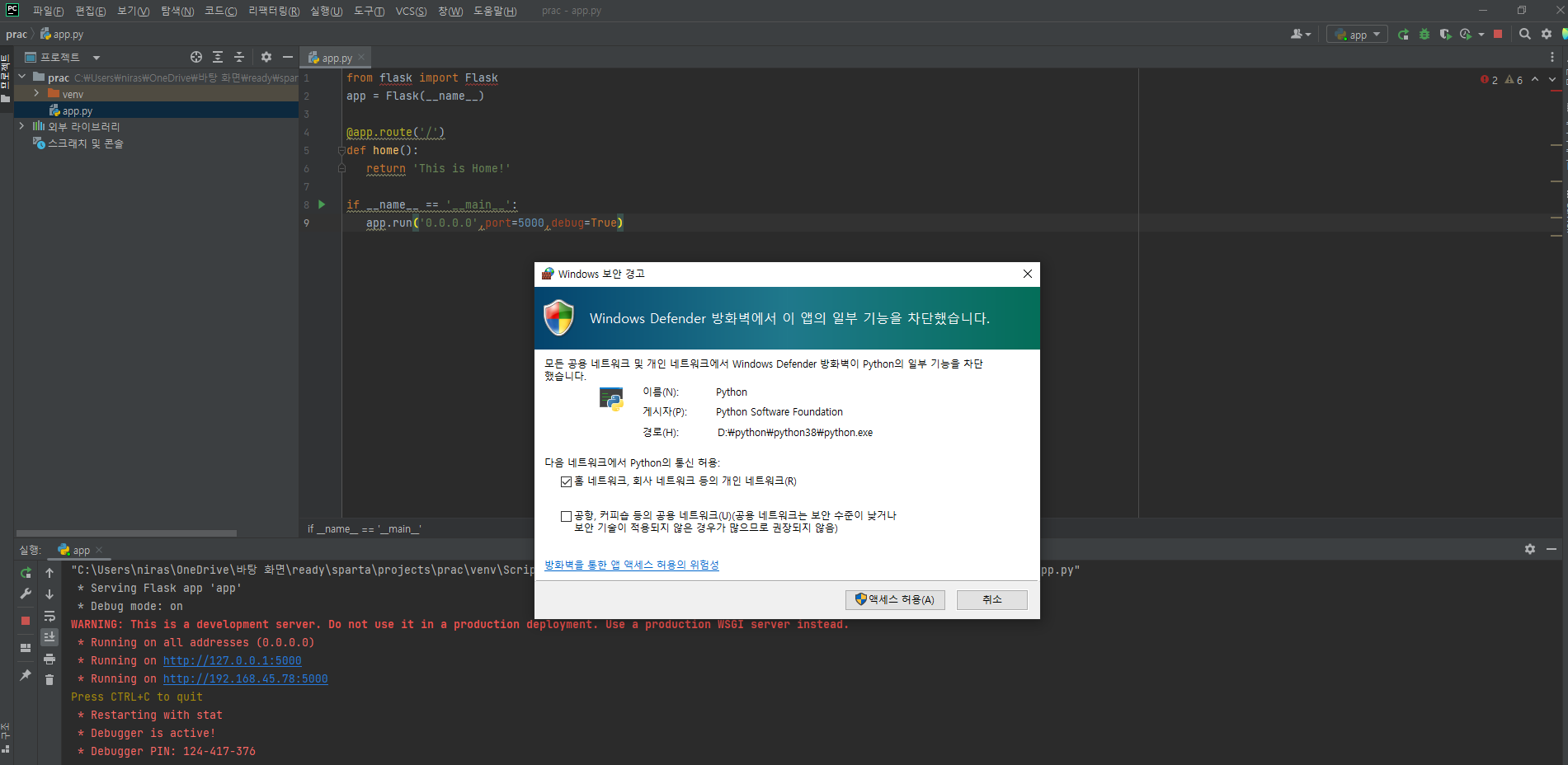 파일 > 설정 > 프로젝트: '내가 생성한 프로젝트 이름' > Python 인터프리터 > + > flask 검색 > 설치