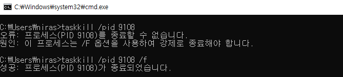 한번에 죽질 않아서 강제종료 옵션을 추가해서 종료