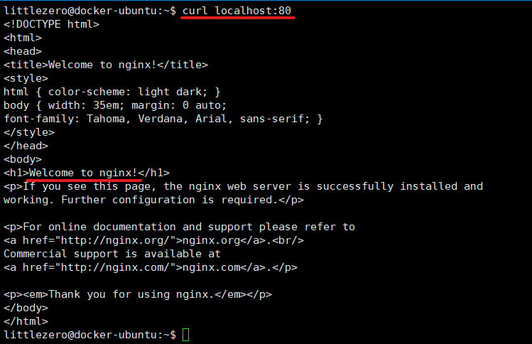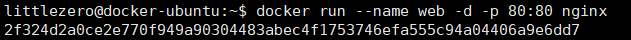| $ docker | run | --name | web | -d | -p | 80:80 | nginx |