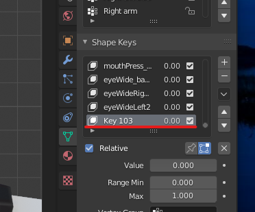 3. 그럼 key+숫자 이름의 쉐이프키가 하나 생성. 이름은 먼저 바꾸는걸 추천 나중에 헷갈릴수 있다.