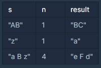 하지만 입출력 예 2에서 보시다시피 소문자 z에서 1 이동하면 소문자 a로 돌아가니 문자가 z,Z일 경우에는 다시 앞으로 돌아갈수 있게 25마다 처리를 적용해주는 부분이 있어야 할듯하다
