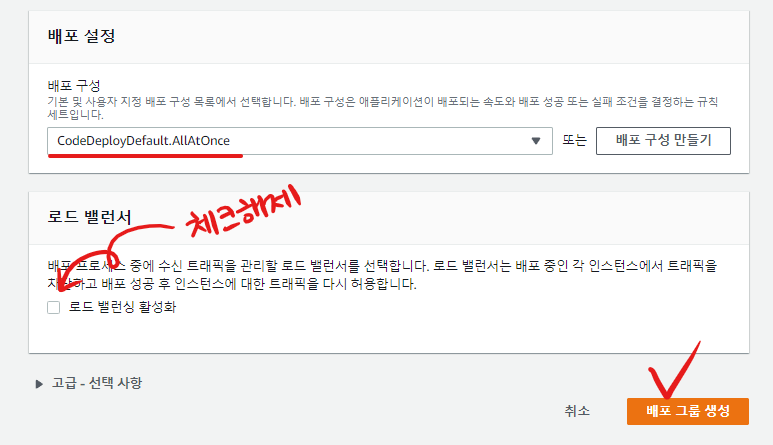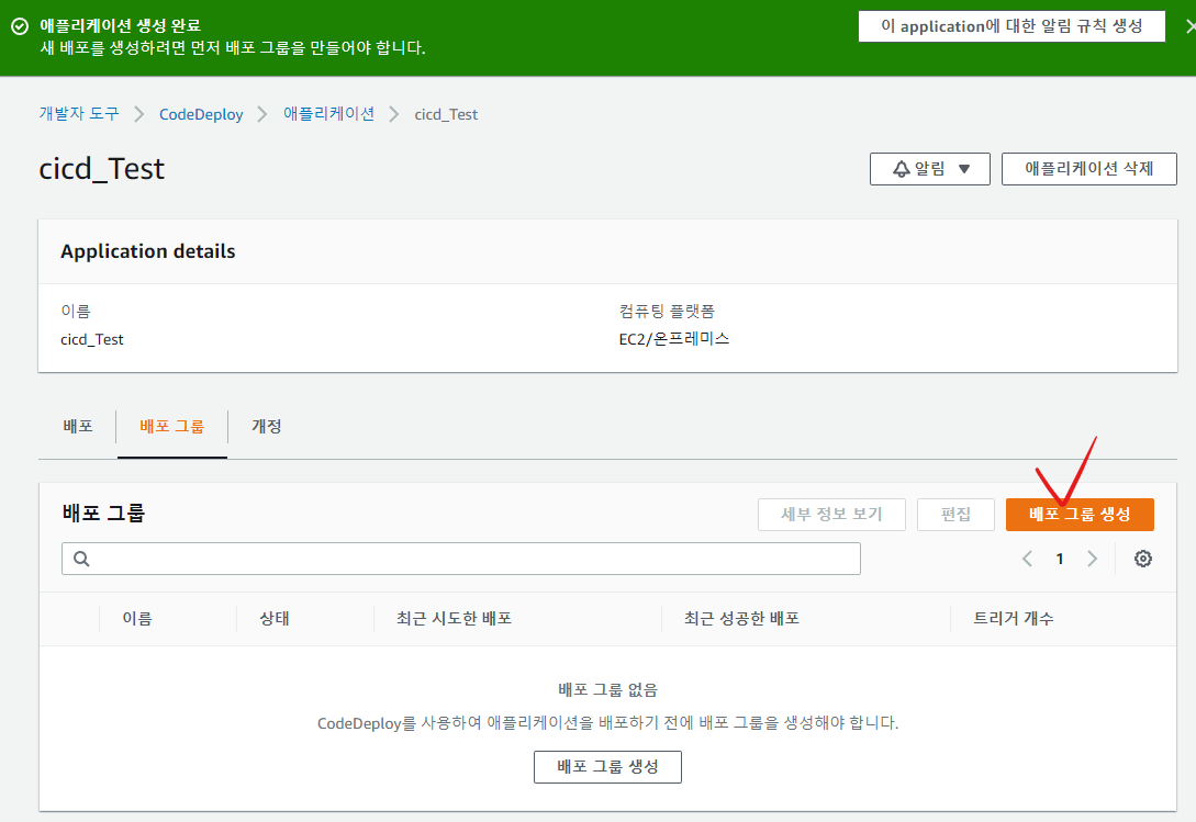 위에 애플리케이션에서 해당 이름 누르면 있는 배포 그룹