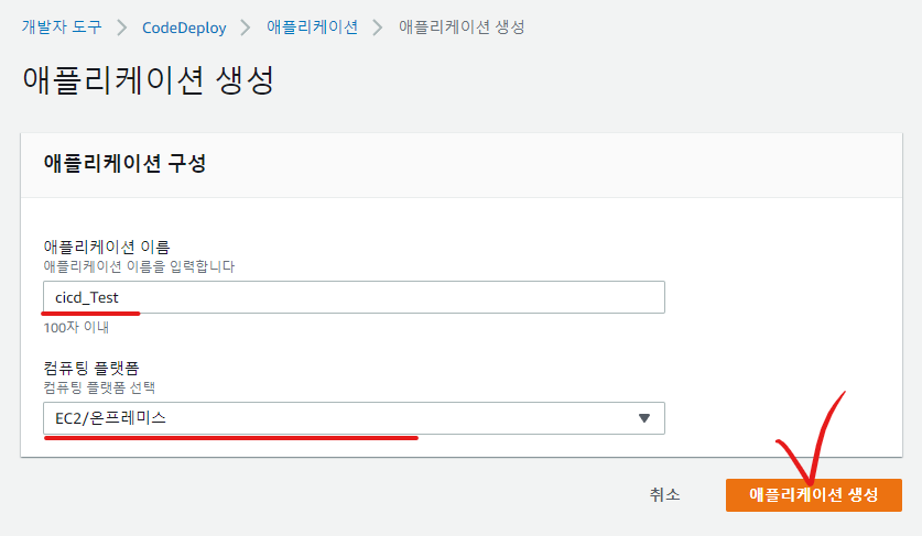 해결: AWS CodeDeploy에서 생성한 애플리케이션 이름과 그 안의 배포 그룹 이름으로 설정해주니 해결