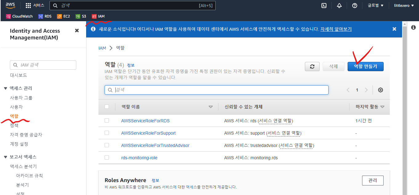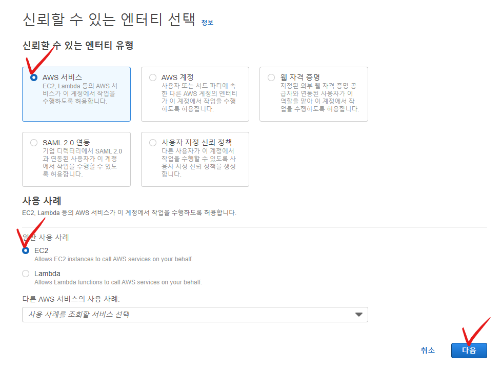사용사례와 이름만 설정하고 역할 생성 클릭