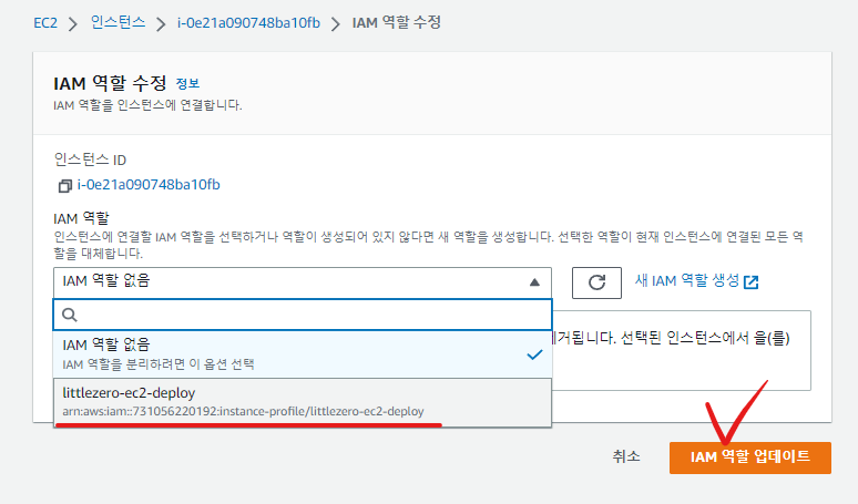 원인: IAM 역할을 지정하지 않은 인스턴스에 CodeDeployAgent를 먼저 설치해 버려 CodeDeploy에 해당 역할을 실행할 수 있는 자격 증명이 없어서 생긴 문제