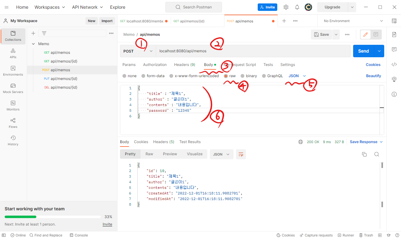 POST | /api/memos/{id} | @pathVariable : id Header : Authorization : Bearer <JWT> {