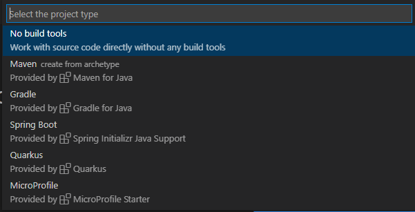F1 또는 ctrl + shift + p 로 명령 팔레트를 띄우고 create java project를 검색